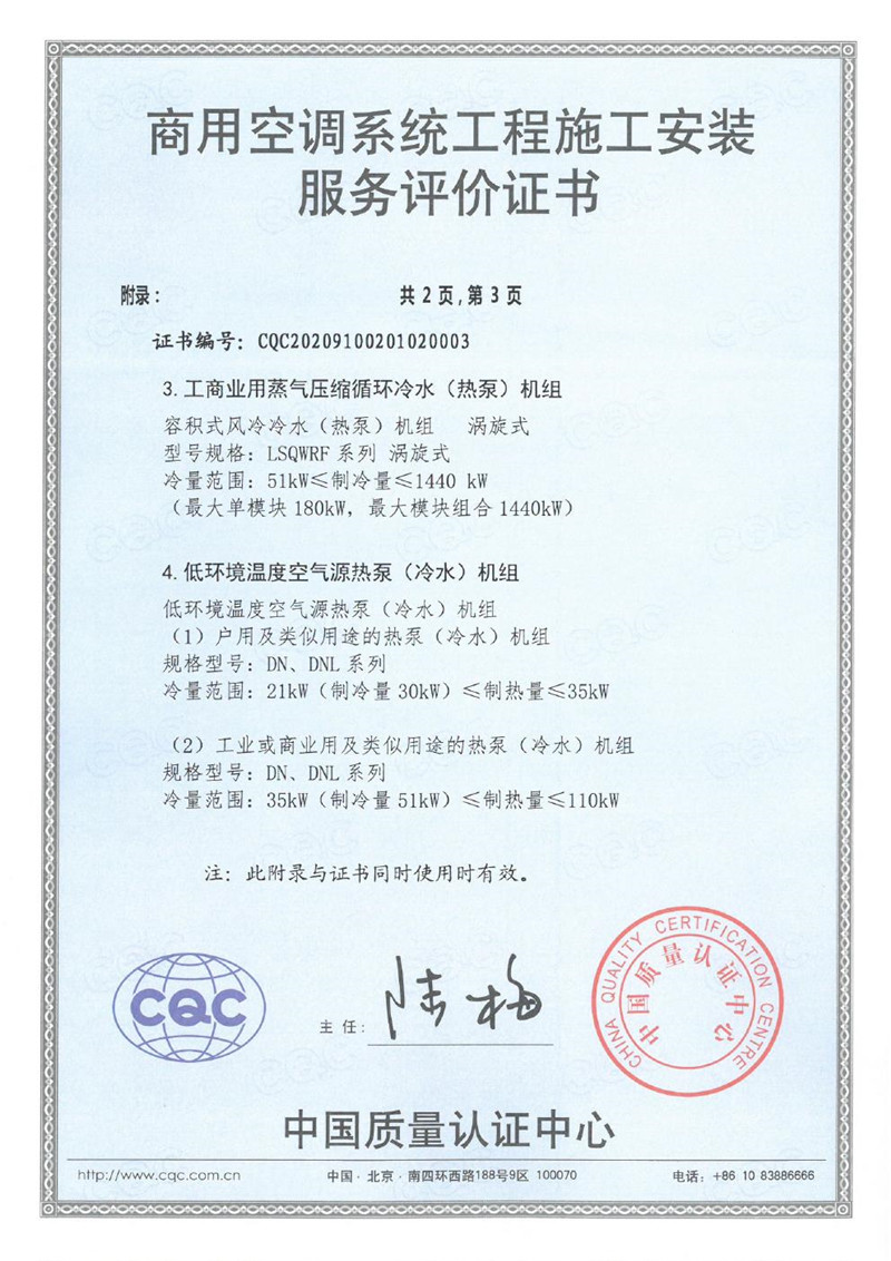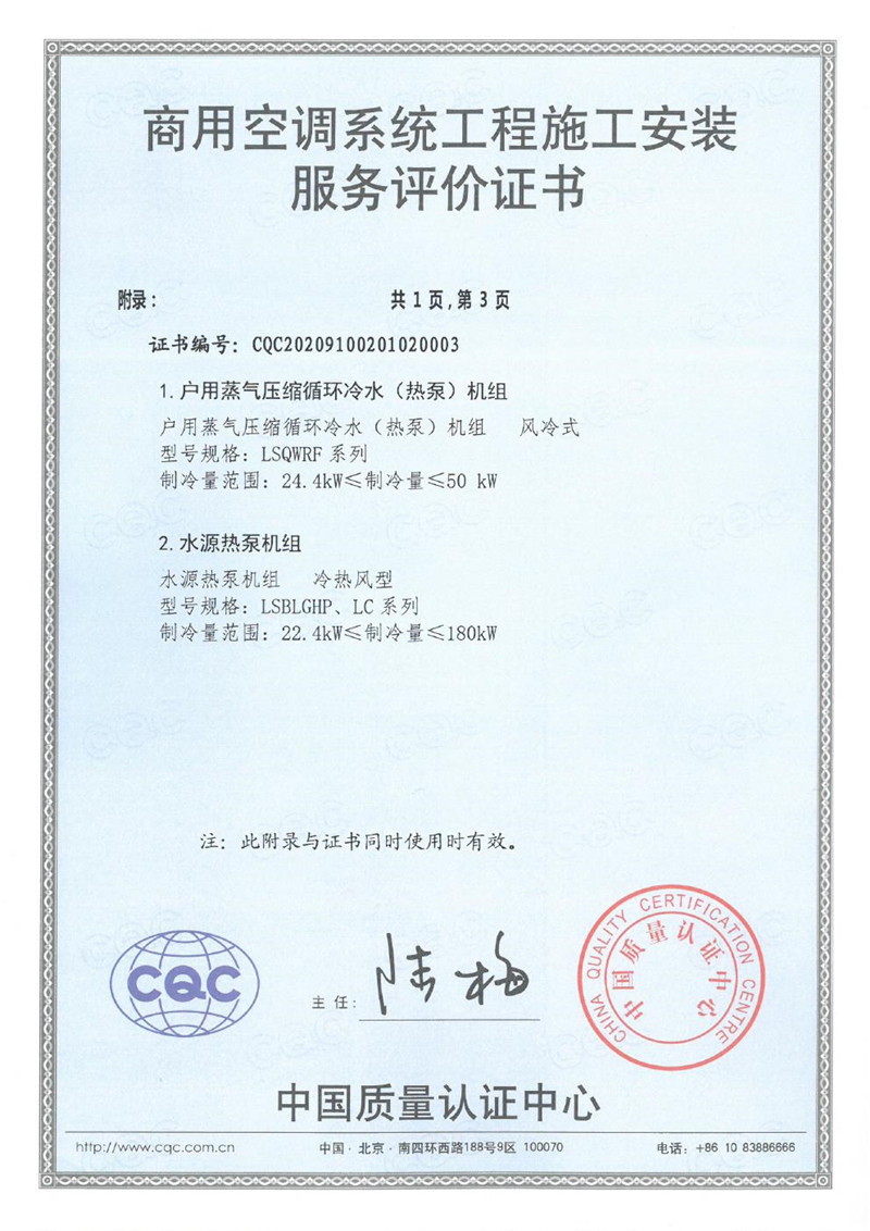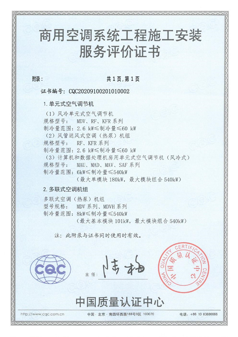 商用空調(diào)系統(tǒng)工程施工安裝服務(wù)評價(jià)證書和附件